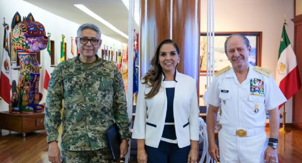 La presentación tuvo lugar en las oficinas de la Semar, en donde la gobernadora Mara Lezama expresó el saludo de las y los quintanarroenses y ofreció la colaboración de su gobierno humanista y progresista para la continuidad de los proyectos que benefician a las familias quintanarroenses, así como para el avance del segundo piso de la Cuarta Transformación en la entidad.