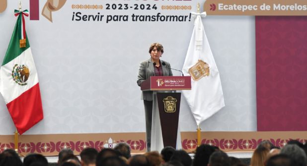 La Gobernadora Delfina Gómez Álvarez rindió su segundo informe regional en Ecatepec, donde destacó avances y el despliegue para atender temas prioritarios en el el Valle de México, como agua, seguridad, movilidad, salud, educación y los programas de bienestar, particularmente aquellos enfocados a apoyar a las mujeres, que son el centro de la política social de este gobierno.