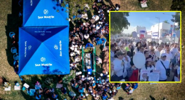 Familiares, compañeros, maestros, amigos y comunidades educativas, marcharon vestidos de blanco protestan en Culiacán por el asesinato de niños Gael y Alexander en ola de violencia en Sinaloa.