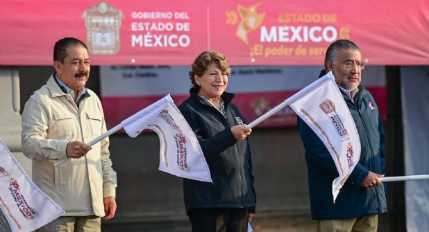 Durante el banderazo de salida realizado en Palacio de Gobierno, la mandataria mexiquense destacó que esta acción refleja el compromiso y cariño del pueblo del Estado de México hacia sus vecinos hidalguenses.
