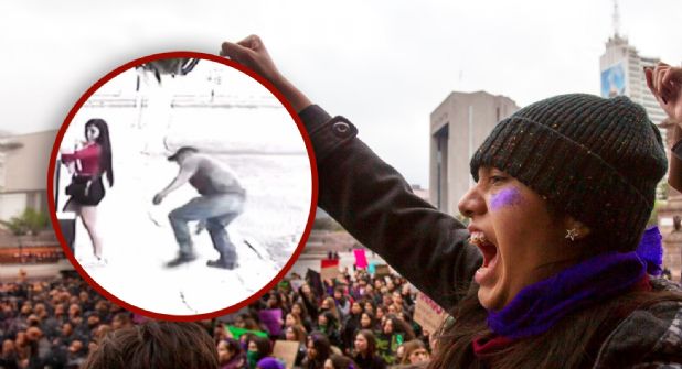 Mientras, la joven, que, vestida con una falda negra y una blusa roja, llega a su domicilio e intenta abrir la puerta. El hombre, vestido con pantalón de mezclilla y playera gris, la alcanza y sorprende, dándole una mordida en un glúteo para luego huir corriendo. El sujeto aborda su vehículo y se retira del sitio.