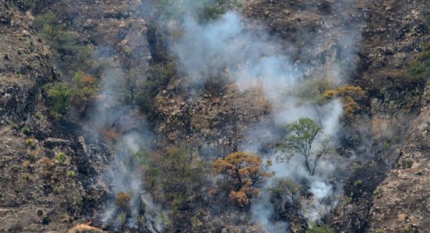 Durante la tarde de este martes se contó con el apoyo interestatal de una aeronave relámpago proveniente del Estado de México, la cual realizó sobrevuelos de reconocimiento para reforzar las acciones de combate qué se reanudarán este miércoles, debido a que por la seguridad del personal, no se efectúan operaciones nocturnas.