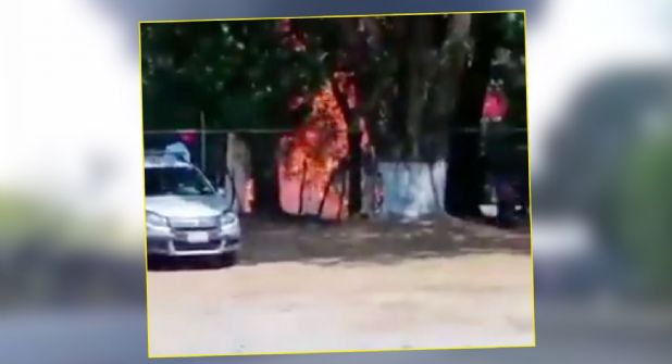 Los hechos ocurrieron poco después de las 10:00 horas, en el crucero ubicado en la carretera federal, donde tras la explosión, varios puestos comerciales se vieron afectados que se instalaron a la orilla de la carretera.