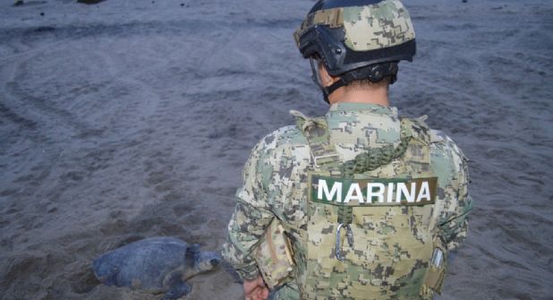 Personal naval custodia arribo de tortuga golfina