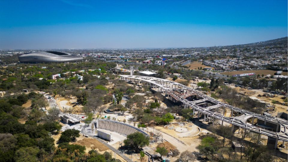 Ubicado junto al Estadio BBVA, el parque se desarrolla en los terrenos donde anteriormente operaba Bosque Mágico y ya supera el 70% de avance, con una fecha estimada de conclusión en marzo de 2026.