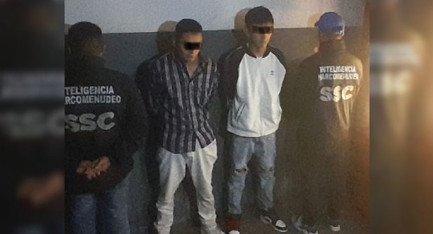 Dos posibles narcomenudistas ligados con la Unión Tepito fueron detenidos cuando aparentemente estaban en el reparto de grandes cantidades de marihuana y cocaína en una motocicleta con equipo de reparto de la aplicación UBER.