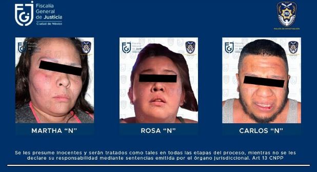 El vocero de la Fiscalía General de Justicia capitalina (FGJ), Ulises Lara, informó que a Martha “N”, Rosa Itzel “N” y Carlos Alberto “N” se les relacionó en el cuádruple crimen, luego de diversos trabajos de inteligencia, acompañados del análisis de cámaras públicas de videovigilancia, que permitieron obtener de un juez de control las órdenes de captura.