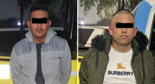 La detención de Jonathan G., de 27 años y Juan Julián T., de 31 años de edad, se registró a las 22:30 horas, en las calles Villagómez y Treviño.