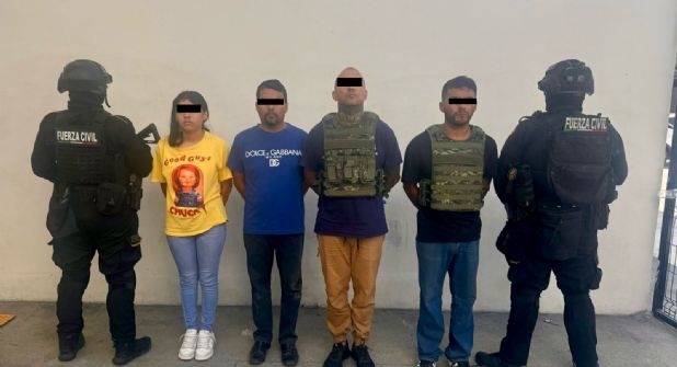 La persecución culminó en la intersección de las calles Lázaro Cárdenas y Salvador Carrillo, donde los sospechosos, sin posibilidad de continuar, descendieron voluntariamente del vehículo. Fueron identificados como José “N” (49 años), Fernando “N” (35), Homero “N” (48) y Aleidy “N” (18).