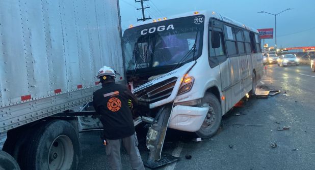 El camión impactó la parte trasera del tráiler y provocó que los pasajeros del transporte de personal resultaran con diversos golpes.