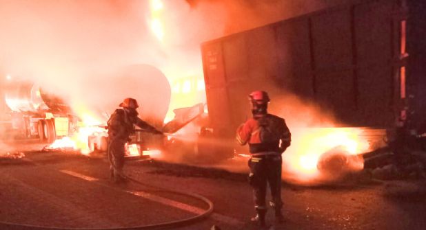 El choque entre un camión nodriza y una pipa de doble remolque provocó un incendio y posteriormente el cierre de la vialidad en la Autopista Saltillo-Monterrey.