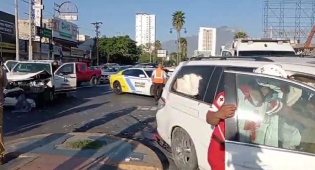 Un choque entre una camioneta de una empresa de valores y una camioneta en el centro del municipio de Monterrey dejó como saldo a cinco personas con lesiones.