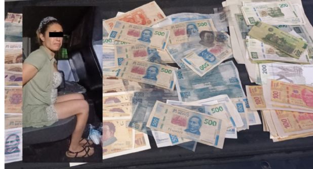 Al querer pagar la carrera de un taxi con un billete presuntamente falso, una mujer fue detenida por elementos de la Policía de Monterrey, luego de que al inspeccionarla, le encontraron más papel moneda falso.