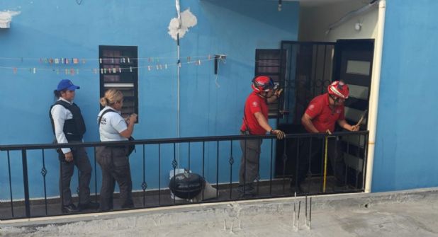 Los elementos de Protección Civil tuvieron que romper el candado de la puerta, para así rescatar a un bebé de cuatro meses y a la mamá, de 20 años de edad, quien se quejó de sufrir violencia familiar.