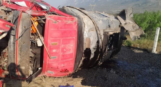 Durante la tarde de este viernes, una pipa se volcó en la Carretera a Saltillo, dejando a un hombre sin vida en Santa Catarina.