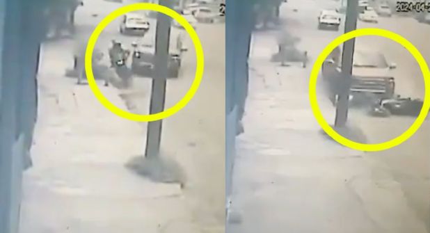 A través de cámaras de seguridad de negocios cercanos, se puede apreciar el momento en que la camioneta alcanza a la motocicleta y al intentar cerrarle el paso, termina arrollando a los ocupantes de esta.
