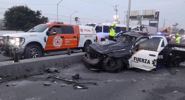 Paramédicos de la Cruz Roja y rescatistas de Protección Civil municipales y estatales acudieron al lugar del percance para atender a los policías lesionados y trasladarlos al Hospital del ISSSTELEÓN para su atención médica.