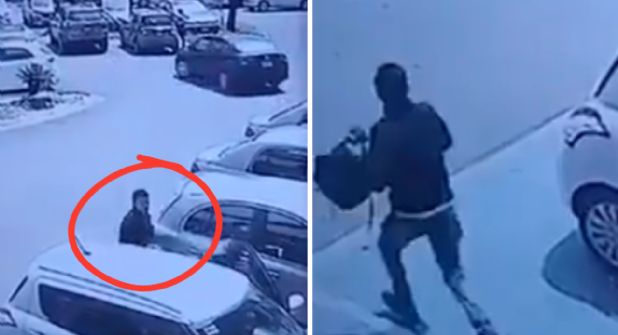 En las imágenes de las cámaras de seguridad, se puede ver que el asaltante, vestido con camisa negra y pantalón de mezclilla, desciende de un automóvil blanco con vidrios oscuros.
