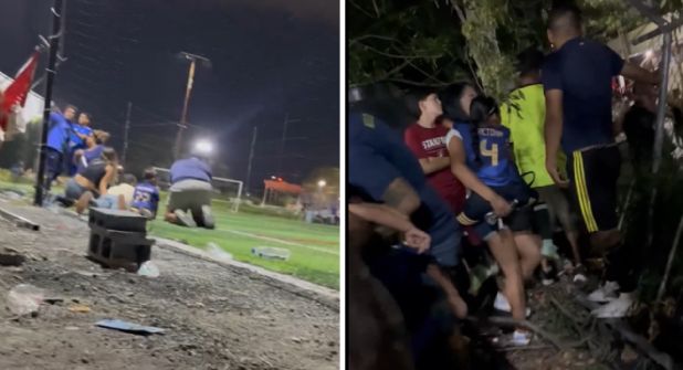 En un segundo video, se puede ver como las familias se encuentran acorraladas junto a una malla ciclónica que cubre el terreno de juego, abrazando a los pequeños para protegerlos y darles tranquilidad.