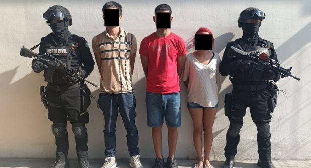 Los detenidos se identificaron como Juan “N”, de 23 años; Jesús “N”, de 20, y Yulia “N”, de 26. Durante la revisión precautoria de sus pertenencias, los oficiales encontraron 25 envoltorios con hierba verde y seca, con las características de la marihuana, y 35 envoltorios con una sustancia similar al cristal, entre otros indicios.