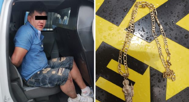 Posteriormente se entrevistaron con la víctima de 31 años de edad, quien refirió que el ahora detenido la despojó de una cadena de oro, con valor a los 15 mil pesos, por lo que solicitó su detención.
