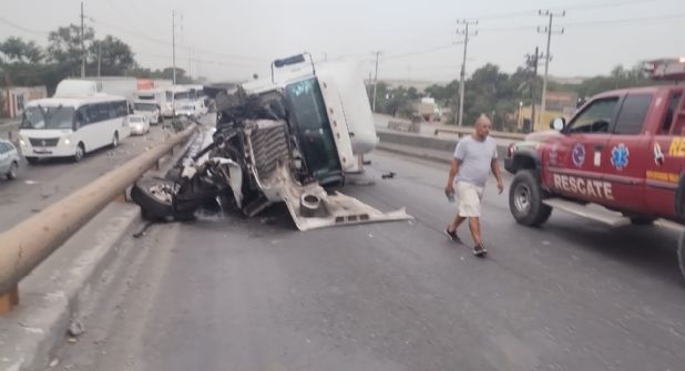 El conductor de un tráiler perdió la vida al registrarse una volcadura en el municipio de Escobedo.