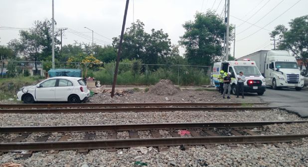 Cuando intentó ganarle el paso al tren, un auto compacto fue embestido por la mole de acero en Monterrey.