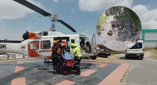 Elementos de Protección Civil de Santiago, quienes ya se encontraban en el lugar, coordinaron el rescate en línea larga, en el cual la lesionada fue evacuada junto a su acompañante. Tras el rescate, la mujer fue trasladada en el helicóptero hasta el helipuerto de las instalaciones de Protección Civil de Nuevo León, donde una ambulancia del CRUM la llevó al Hospital General de Zona N°21 del IMSS para recibir atención médica especializada.