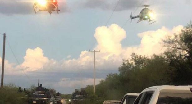 Minutos después de la detención, los efectivos de las fuerzas de seguridad detectaron un convoy compuesto por aproximadamente ocho camionetas, tripuladas por hombres armados, que se desplazaban desde Cerralvo hacia Los Ramones. Ante la presencia de las autoridades, los delincuentes intentaron huir, lo que desató una persecución y un enfrentamiento armado.