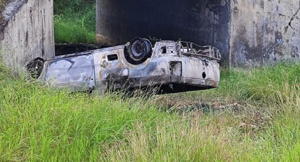 El percance se reportó alrededor de las 5:00 horas, cuando se dio aviso a los cuerpos de emergencia sobre un vehículo que había salido del camino y se encontraba en llamas tras volcarse.