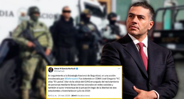 De acuerdo con García Harfuch, la caída de este reclutador se obtuvo por medio de una operación en la que participó la Secretaría de la Defensa Nacional, la Guardia Nacional y la Secretaría de Seguridad y Protección Ciudadana, con el apoyo del Centro Nacional de Inteligencia.