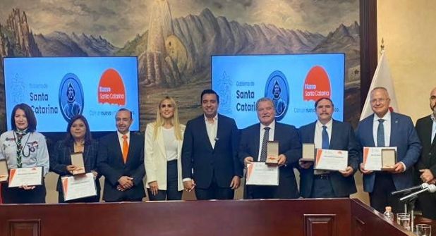 El Gobierno de Santa Catarina reconoció a cinco ciudadanos con la "Medalla al Mérito Capitán Lucas García" en las áreas Cultural, Social, Empresarial, Ambiental y de Derechos Humanos. La distinción se entregó durante una sesión solemne de Cabildo presidida por el Alcalde Jesús Nava Rivera, quien destacó las trayectorias de los galardonados seleccionados por el Comité para el Otorgamiento del Premio.