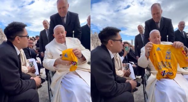 Los felinos se hacen presentes por todo el mundo y ahora hasta el Vaticano fueron a dar. Fue a través de redes sociales que se dio a conocer un video por el usuario @Luis_Elizondo, donde se muestra cómo el joven le entrega un jersey de los Tigres al Papa Francisco.
