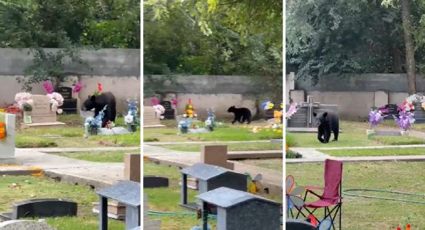 Los avistamientos de osos continúan en el área metropolitana de Monterrey, pues ahora a través de redes sociales, Shirley Hernández compartió el momento en el que una familia de osos paseaba por un panteón.