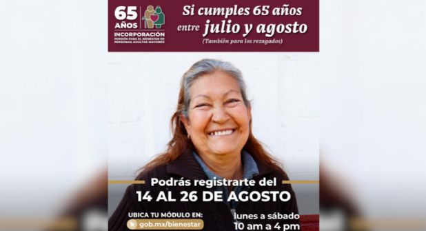 Ariadna Montiel Reyes, Secretaria de Bienestar, anunció que desde el 14 hasta el 26 de agosto se llevará a cabo en todo el territorio nacional el proceso de inscripción a la Pensión para el Bienestar de las Personas Adultas Mayores para aquellos que cumplen 65 años entre los meses de julio y agosto.