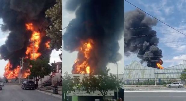 Debido a la explosión de la pipa de gas al interior de la fábrica, las llamas comenzaron a consumir todo lo que encontraron a su paso, provocando la presencia de una gran columna de humo.