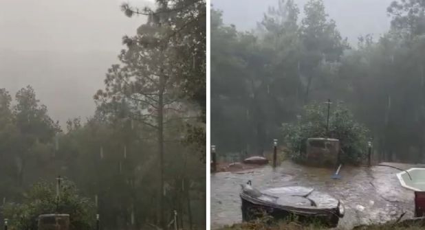 Protección Civil de Nuevo León compartió a través de redes sociales las primeras imágenes de la lluvia sobre la Sierra de Santiago, en el Paraje Potrero Redondo, por lo que invitó a la ciudadanía a tomar precauciones para evitar accidentes.