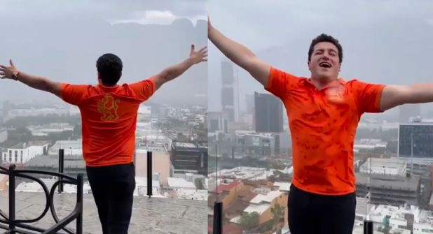 Fue a través de sus redes sociales que el mandatario estatal salió a mojarse para celebrar que estuviera lloviendo en Nuevo León.