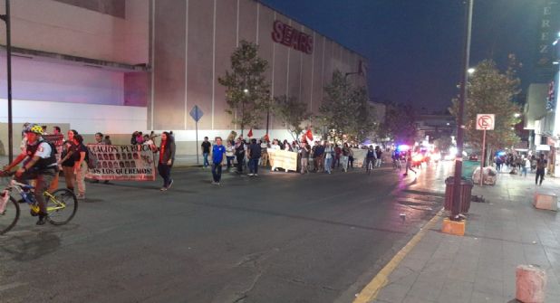 La protesta se registró alrededor de las 18:00 horas, en la Explanada de Colegio Civil y se espera que termine en la Explanada de los Héroes, pasando por la avenida Benito Juárez y las calles Padre Mier, Morelos y Zaragoza.