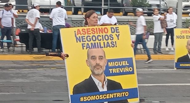 Decenas de vecinos de Centrito Valle se manifestaron en contra del alcalde de San Pedro, Miguel Treviño, debido a las inconformidades que existen en torno a las obras viales que ha realizado durante su gestión.