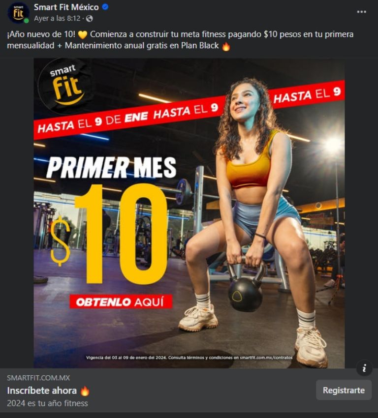 Es por eso que Smar Fit anunció en sus redes sociales que la primera mensualidad para nuevos usuarios será de 10 pesos, así como también la inscripción gratis.