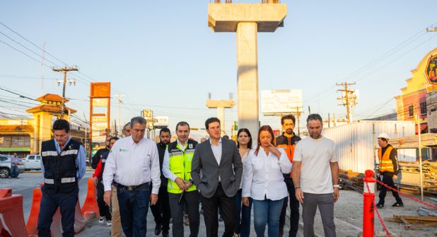 Como parte de los trabajos de la construcción de esta obra de movilidad, Samuel García realizó una supervisión en distintos puntos de la Línea ubicada sobre la avenida Miguel Alemán, acompañado de funcionarios estatales y constructores.