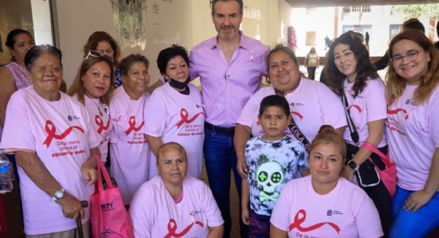 Este acto tuvo lugar en el Palacio Municipal, donde se llevó a cabo una brigada de salud, ofreciendo consultas médicas gratuitas, pases para mastografías y módulos de autoexploración, como parte del compromiso del municipio para combatir el cáncer de mama.