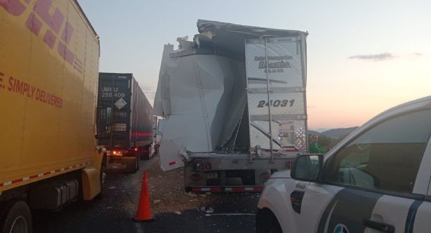 La vialidad quedó acordanada sin pasar a mayores, sólo daños materiales en la autopista y de los traílers involucrados.