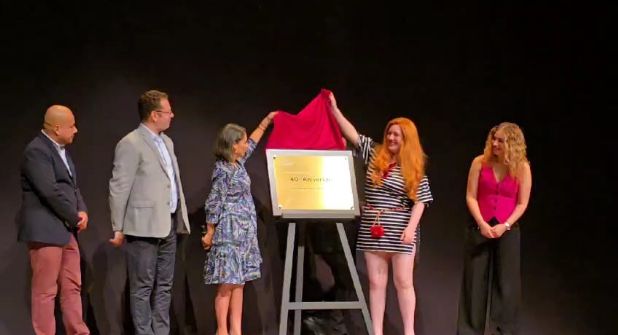 La secretaria de Cultura de Nuevo León, Melissa Segura Guerrero, develó una placa para celebrar los primeros 40 años del Teatro de la Ciudad.