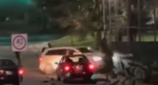 Los hechos, cuyas imágenes fueron difundidas a través de redes sociales, se registraron durante las primeras horas de este jueves sobre la avenida Cartagena cerca de su cruce con la avenida De los Ébanos en la colonia Los Pinos.