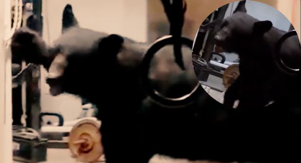 El momento más impresionantes de las imágenes es cuando el oso negro se para sobre sus patas traseras y se aprecia su gran tamaño busca encima de la estructura que intenta abrir.