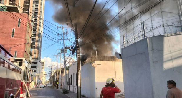 Un incendio de unas baterías industriales en el interior de los patios del edificio de Telmex causó una intensa movilización de los puestos de auxilio en el centro de Monterrey.