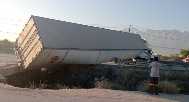 El accidente ocurrió en los carriles que fluyen de oriente a poniente. Según las primeras versiones, el conductor del tráiler no se percató de un arroyo que se encontraba frente a él al intentar cambiar de dirección, lo que provocó que las llantas traseras del remolque quedaran atrapadas en el fondo del canal.