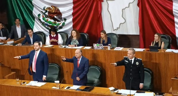 Previo a iniciar su informe la diputada presidenta del Congreso local, Lorena de la Garza, pidió tanto al secretario general de Gobierno, Javier Navarro Velasco, como al secretario de Seguridad Pública, Gerardo Escamilla, y al secretario de Participación Ciudadana, Daniel Acosta, protestar decir la verdad de sus declaraciones.